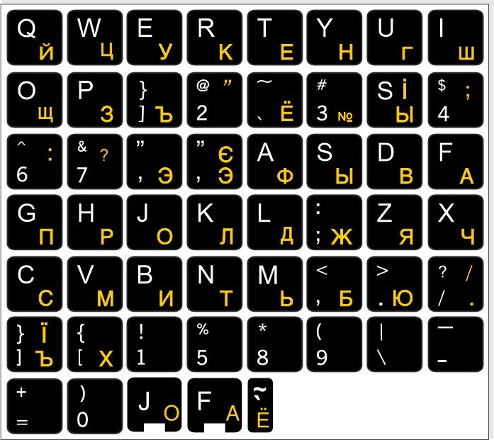 Rosyjskie / ukraińskie naklejki na klawisze zmieniają układ klawiatury laptopa lub komputera na dwujęzyczną, dzięki czemu z łatwością można pisać po rosyjsku lub ukraińsku.