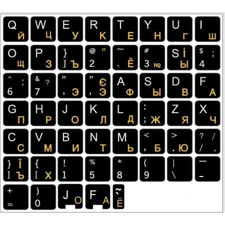 Naklejki na klawiaturę CYRYLICA UKRAIŃSKA / ROSYJSKA (ŻÓŁTA) + POLSKIE